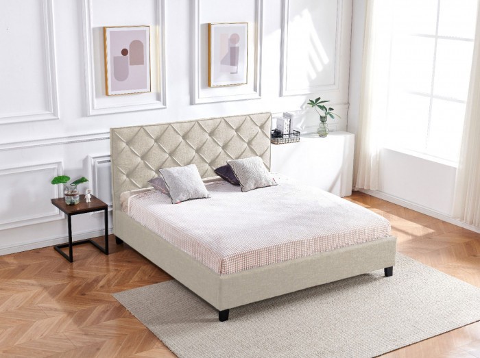Pat Hypnotic 180x200 cm Tapitat Catifea Bej Somiera Inclusa (cod ML 1705-01)