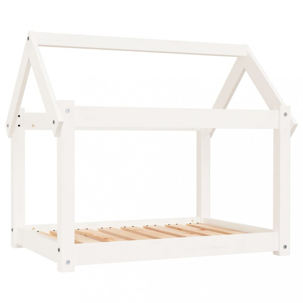 Pat pentru caini, alb, 81x60x70 cm, lemn masiv de pin