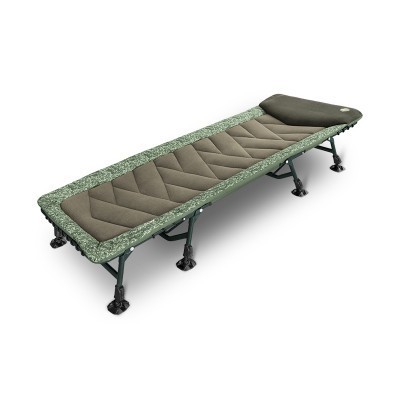 Un pat confortabil cu opt picioare care asigură o odihnă de calitate pe malul apei. Baza patului este realizată pe o structură stabilă și ușoară. În plus, este durabilă împotriva deteriorărilor mecanice. Structura este acoperită cu o saltea căptușită, cu o suprafață din fleece care o face caldă și moale la atingere. De asemenea, este acoperită cu o țesătură durabilă 600D cu un design C2G pe părțile laterale. Tetiera are o căptușeală suplimentară din fleece verde pentru un confort sporit. Partea centrală este întărită în partea de jos și este posibil să se regleze duritatea saltelei cu ajutorul unei curelușe din cauciuc. Toate cele 8 picioare sunt prevăzute cu tălpi de noroi robuste care pot fi ajustate în funcție de tipologia terenului. Perechea de picioare de sub partea frontală a patului are un mecanism de siguranță pentru a putea desfășura cu ușurință patul și pentru a împiedica înclinarea sau deplasarea acestuia. Patul are două curele cu catarame mari pe laterale, astfel încât nu se va deschide singur atunci când este pliat, acest lucru face transportul mult mai ușor. Acest produs este însoțit de o husă practică pentru a vă depozita telefonul, stația sau alte accesorii mai mici. Toate aceste caracteristici, o căptușeală confortabilă și un design unic fac din EightLUX 8 unul dintre paturile de TOP din această categorie.