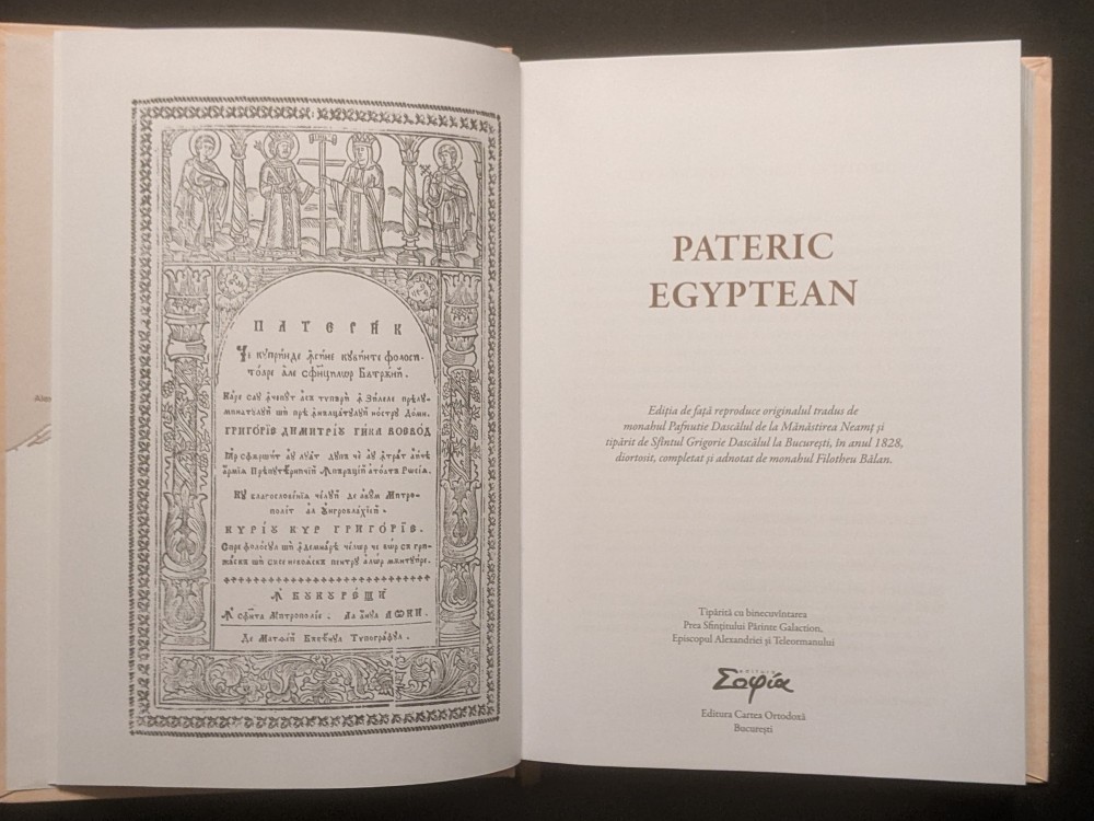 ✝ PATERICUL EGIPTEAN 584 pag. Reproducerea editiei 1828 tradusa de PAFNUTIE DASCALUL de la Mânăstirea Neamț 2011 Sofia CARTONATA 24x17cm Stare f. buna