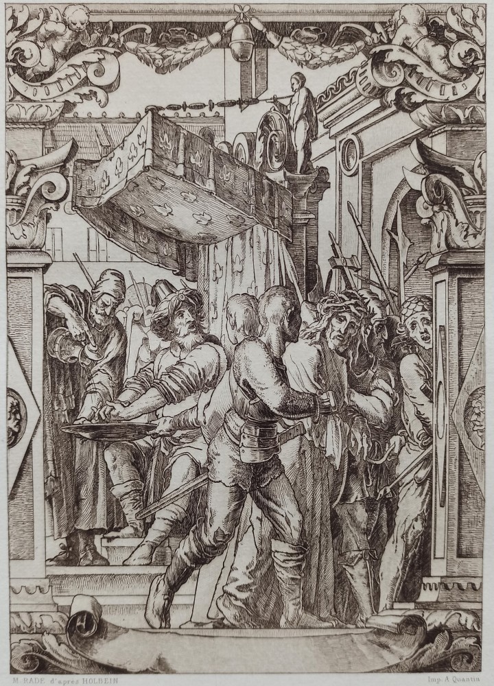 Patimile lui Hristos, Pilat isi spala mainile, dupa Holbein// gravura A. Quantin