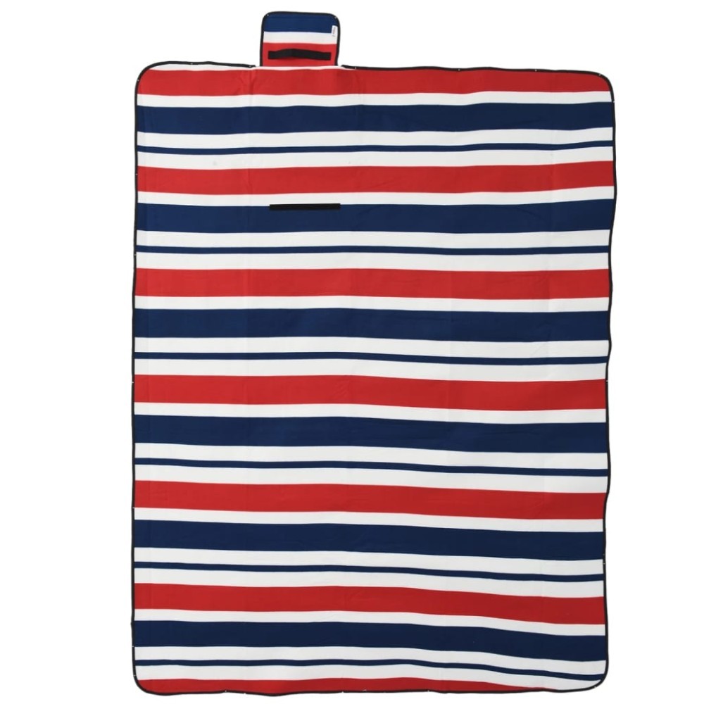 Patura picnic pliabila, dungi rosu albastre, 200x150 cm catifea