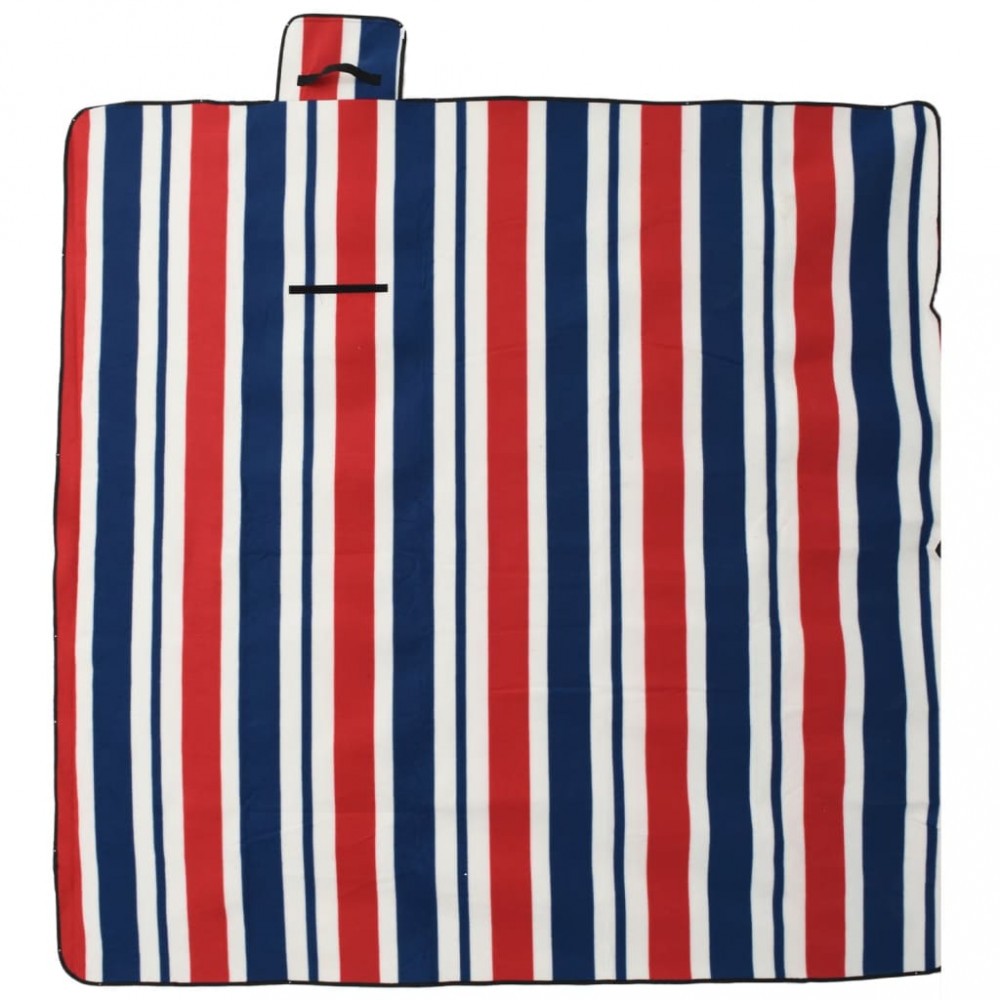 Patura picnic pliabila, dungi rosu albastre, 200x200 cm catifea