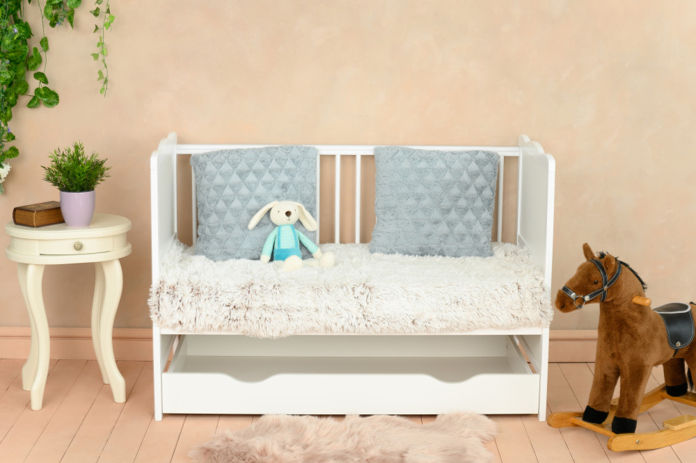Patut multifunctional Julia cu sertar – 3 in 1: patut, pat junior si canapea