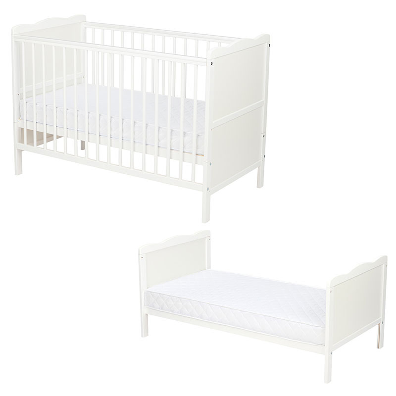 Patut lemn bebe Qmini Julia 3 in 1, 120x60 cm, alb, cu saltea cocos 10 cm, EN716