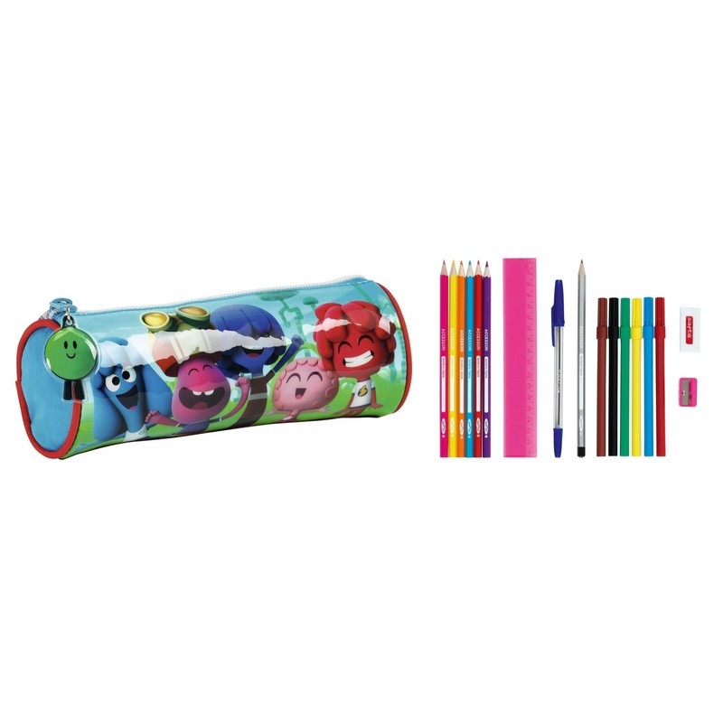 Penar echipat cu 17 piese Jelly Jamm. Penarul Jelly Jamm are un compartiment si este echipat cu 17 piese, instrumente de scris. Continut: 6 markere, 6 creioane colorate,1 rigla, un creion HB, un pix, radiera,ascutitoare Desenul se concentreaza pe aventurile a cinci prieteni ce traiesc pe planeta Jammbo. Dimensiune: 20 x 9 x 8 cm