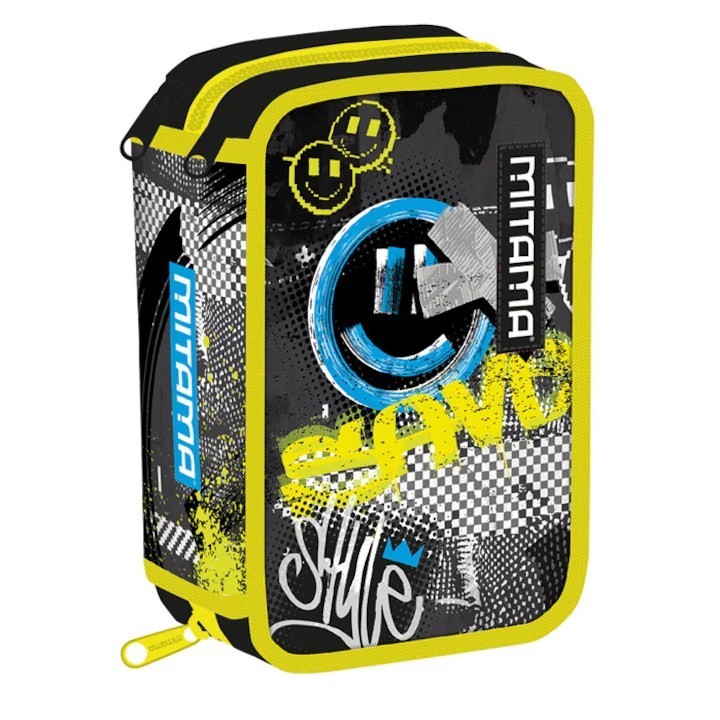 Penar Mitama, 3 compartimente, design galben cu negru, 14.5 x 7.4 x 20 cm