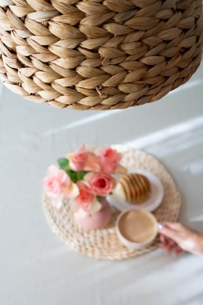 - Bucătărie: În bucătării cu un decor rustic, mediteranean sau scandinav, lampa împletită aduce o notă de naturalețe. Poate fi plasată deasupra insulei de bucătărie sau a mesei de mic dejun.