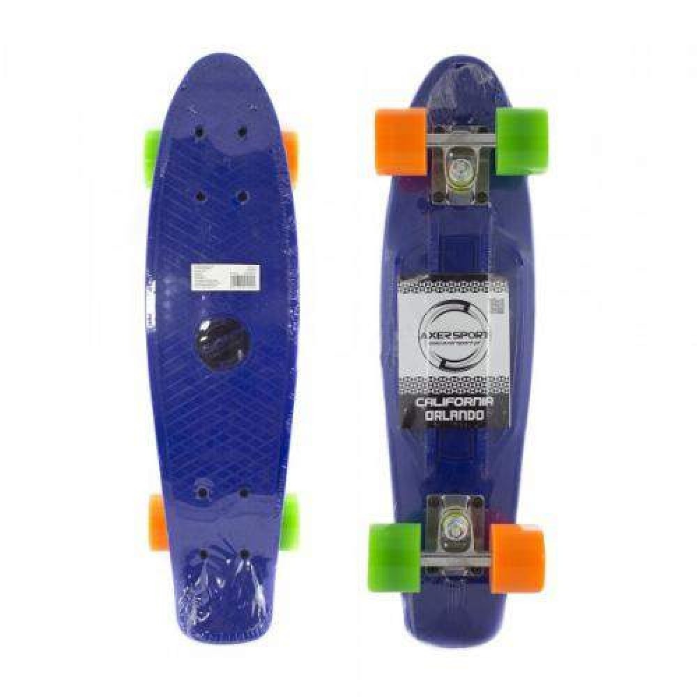 Penny board California este realizat din materiale durabile, suprafata este prevazuta cu striatii pentru aderenta sporita, incape cu usurinta in rucsac.Penny board-ul este dotat cu roti rezistente din poliuretan, colorate diferit si rulmenti ABEC 7 care va asigura o deplasare silentioasa si un bun control al placii.Pennyboard-ul suporta o greutate maxima a utilizatorului de pana la 100 kg.Rotile pot avea culori diferite.Descriere tehnica:Dimensiuni: L56 x l15 x h10 cmMaterial: PVC durRulmenti ABEC 7Dimensiuni roti: 60 x 45 mm, duritate 80AMaterial roti: poliuretanAx heavy duty din aluminiu de 3.5'Greutate produs: 2 kgGreutate maxima a utilizatorului: 100 kgCuloare: albastru inchis