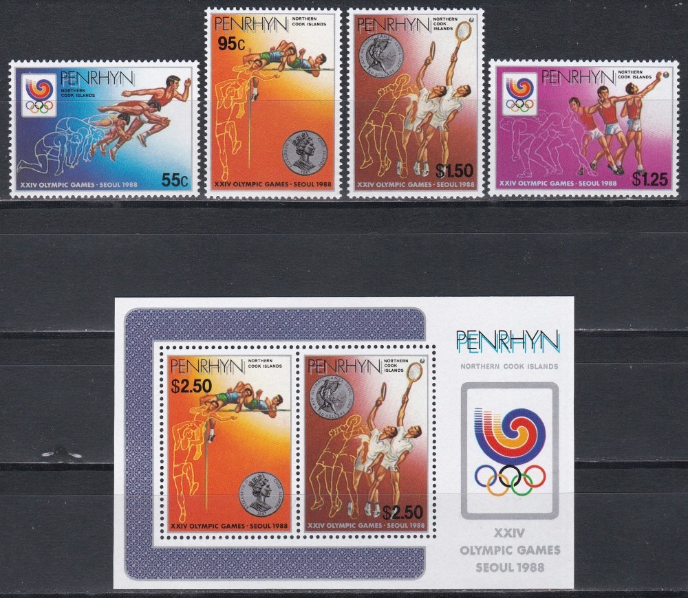 Penrhyn 1988 - Jocurile Olimpice – Seul, Serie + Coliță, MNH