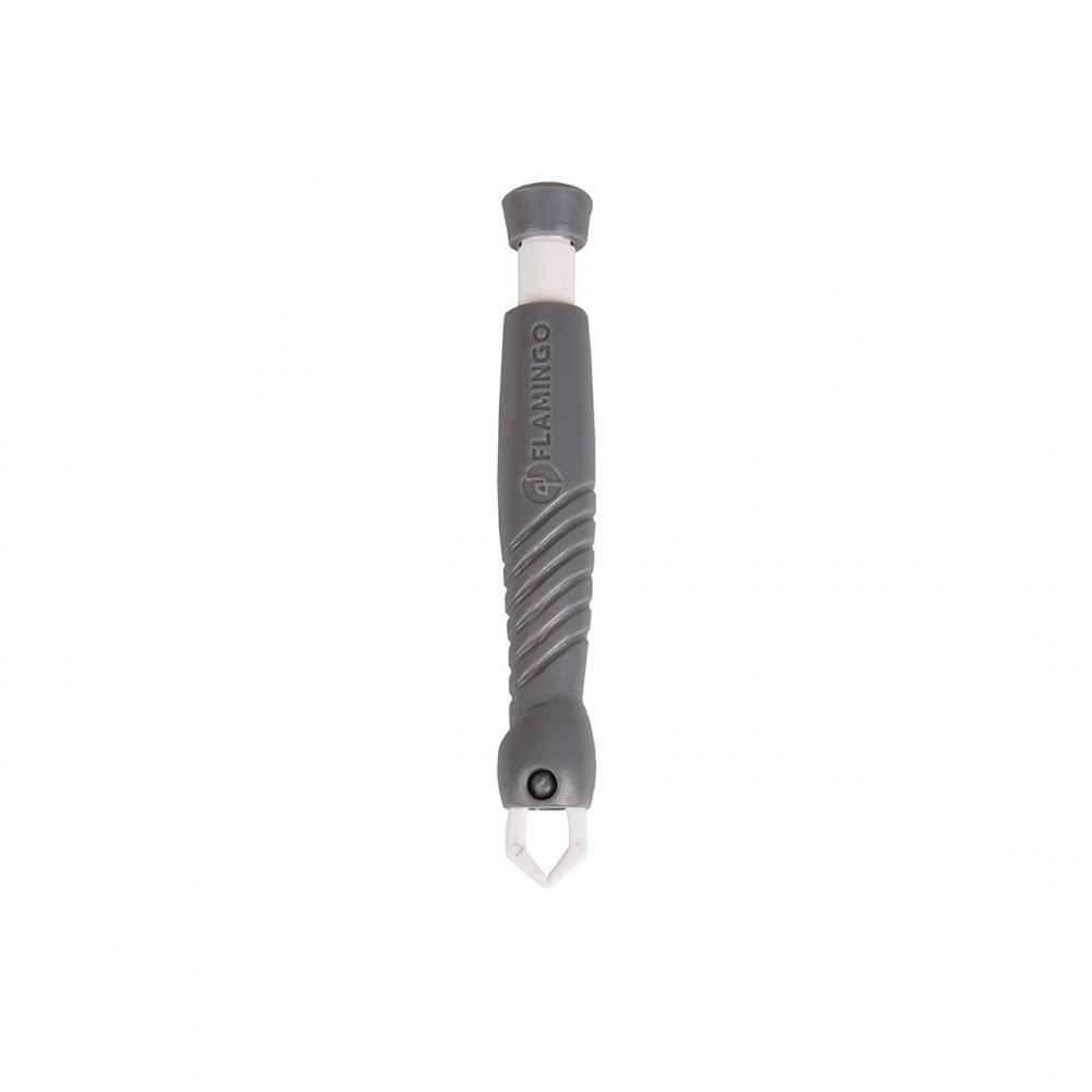 PENSETA ANTICAPUsE PENTRU CAINI sI PISICI FLAMINGO Acest aparat ofera o eficacitate deosebita in extragerea capusei aflate pe caine sau pisica. Stabilizati zona din jurul capusei cu degetele. Apasati butonul pentru a deschide sistemul de prindere. Asezati cu atentie penseta pe capusa si inchideti-o incet. Rotiti penseta usor in ambele directii pentru a slabi capusa. Trageti in sus asigurandu-va ca aceasta va ramane intr-o singura bucata. Dezinfectati zona intepaturii de capusa. DIMENSIUNE: 1,4 x 9,8 x 1,4(h) cm.