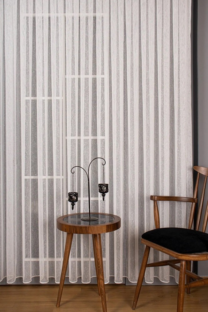 Materialul din care este confectionata perdeaua este usor de intretinut si rezista bine in conditiile unei bucatarii, cum ar fi umiditatea si posibilele pete. Materialele sintetice sau amestecurile care includ poliester sunt adesea recomandate deoarece sunt mai usor de spalat si se usuca rapid.