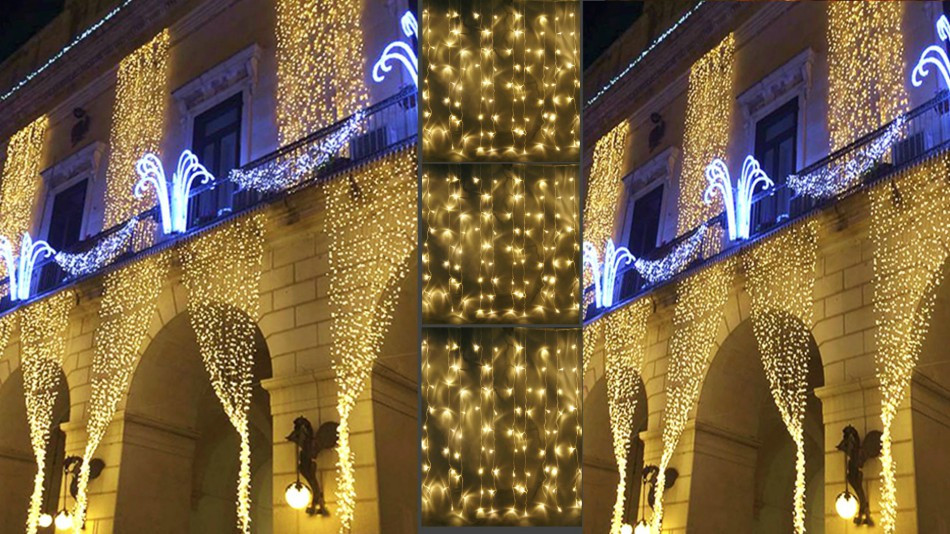 - Instalatii luminoase perdea pentru sarbatori sau evenimente speciale: botezuri, nunti, targuri - ce amintesc de povesti si basme, pentru impodobire cladire intreaga sau interioare mari, putand fi utilizate inclusiv pt impodobirea brazilor maxi din exterior ( primarii, case private, etc)