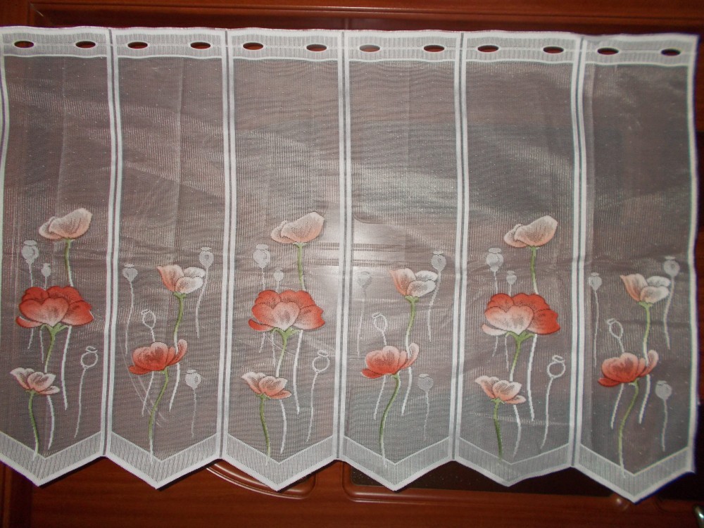 PERDEA PANOU ALBA CU FLORI COLORATE.AU INALTIMEA DE 0,6 M SI LATIMEA UNUI PANOU ESTE DE 1,35 METRI.