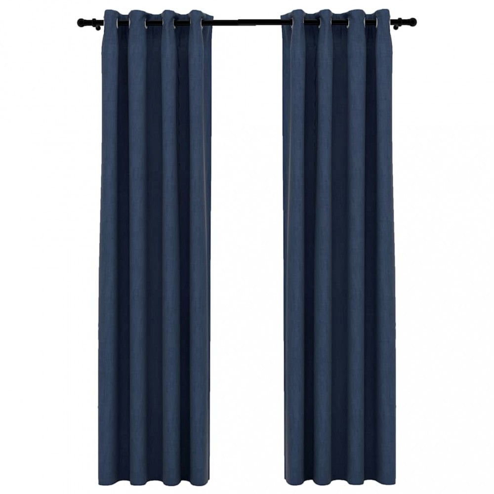 Perdele opace aspect panza cu ocheti 2 buc albastru 140x245 cm