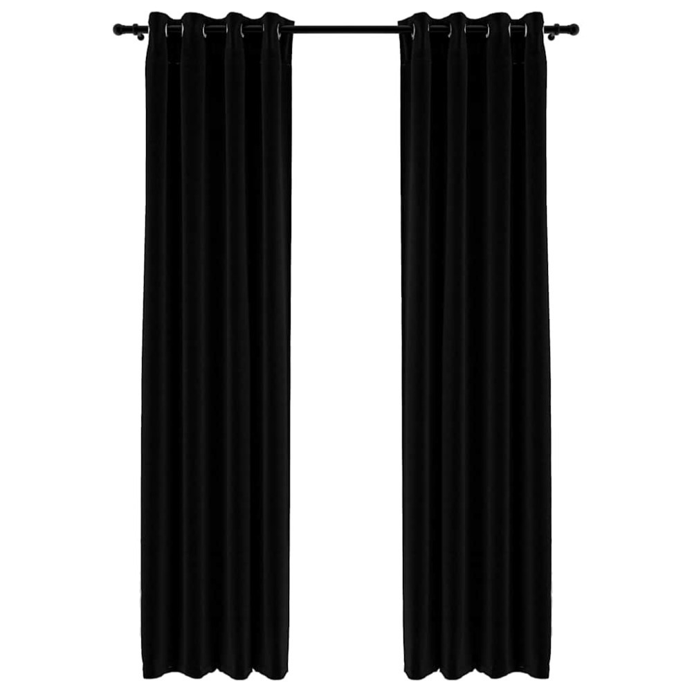Perdele opace, aspect panza, ocheti, 2 buc., negru, 140x245 cm