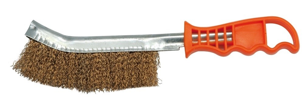 - Fabricata din sarma din alama ondulata legata intr-un maner din metal acoperit cu material plastic.