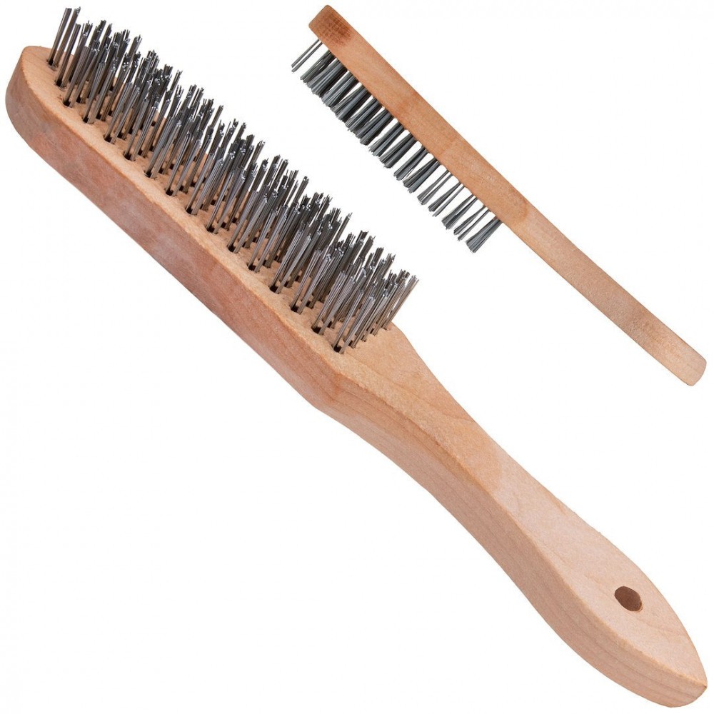 Perie de sarma pentru indepartarea ruginii, maner din lemn, 5 randuri de peri de sarma, Geko G00735