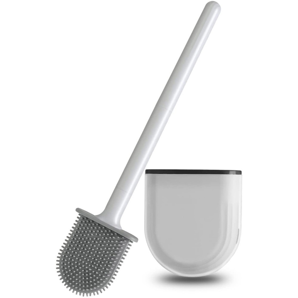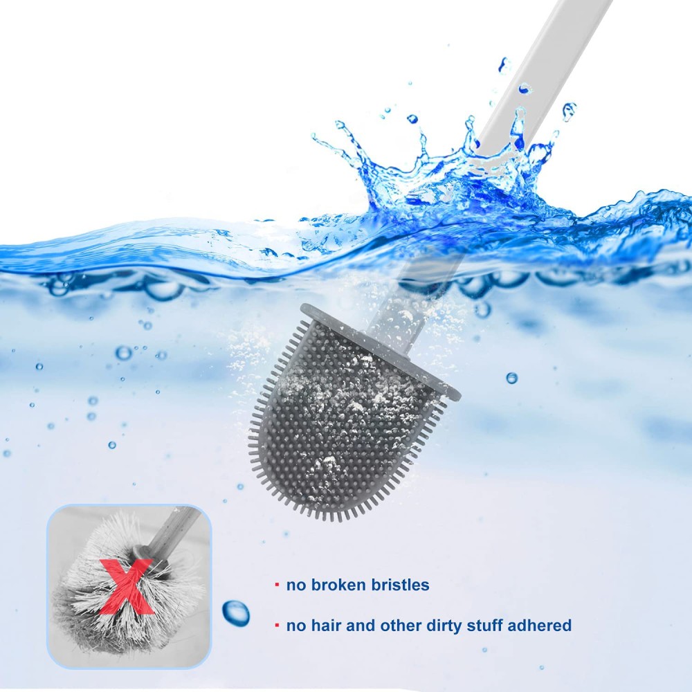 Capul de perie din silicon este plat ,ascutit si flexibil, special conceput pentru a curata mai bine toate colturile vasului de toaleta prin indoirea capului de perie in diferite unghiuri.