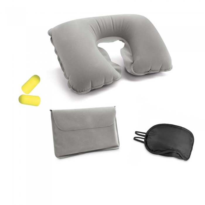 Perna de calatorie gonflabila, moale la atingere, masca de dormit, dopuri pentru urechi, cu husa, gri