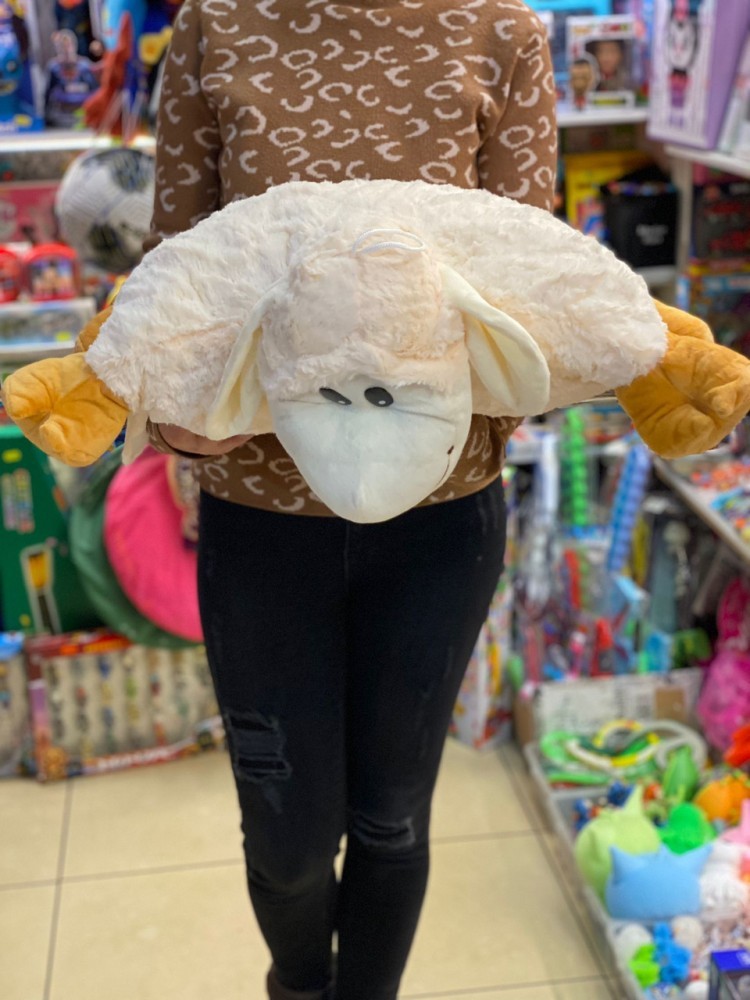 Perna oaie din plus cret dar foarte placut la atingere. La interior este umpluta cu puf siliconat moale antialergic. Se poate curata prin spalare sau stergere cu o carpa umeda. Are dimensiunea de 50x40cm