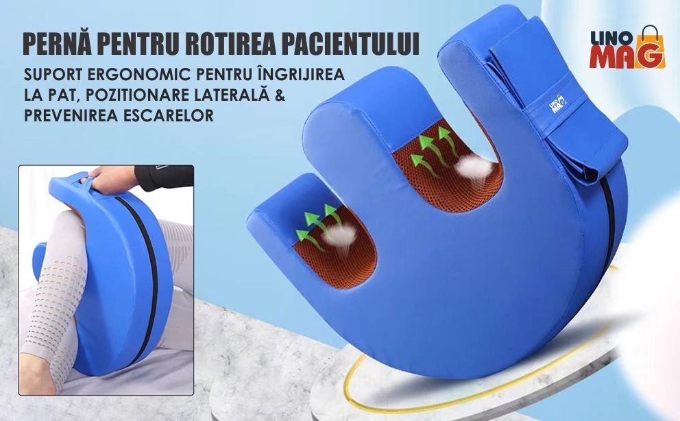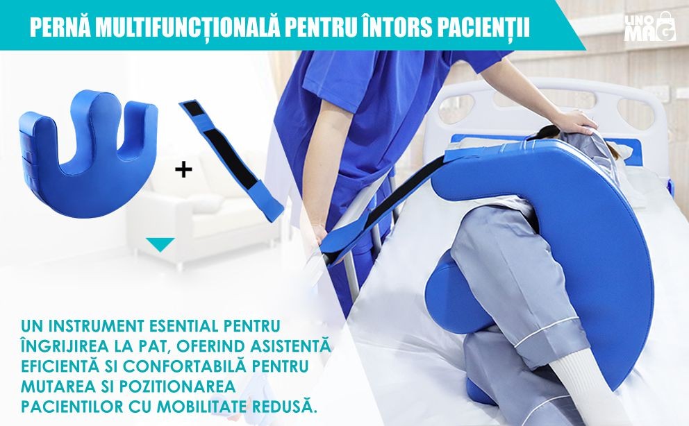 Această pernă multifuncțională este soluția ideală pentru îngrijirea eficientă și confortabilă a pacienților cu mobilitate redusă, reducând stresul îngrijitorilor și oferind o experiență sigură și confortabilă pacientului.