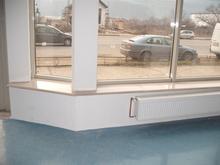 exterior,realizat din marmura recompusa.Culoarea este alb murdar