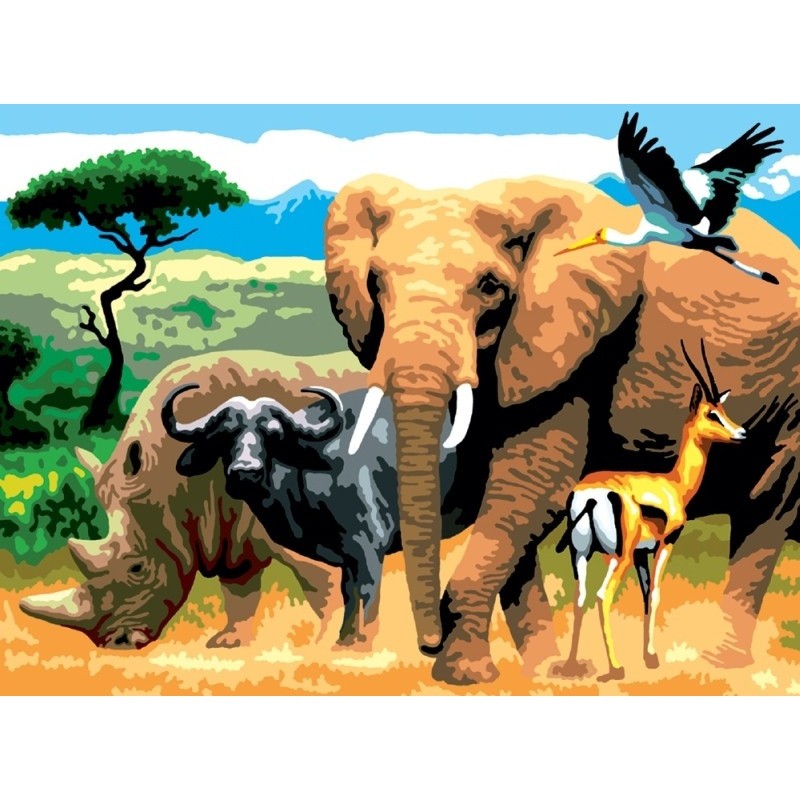 Setul contine: 10 borcanele vopsea, carton pictura pretiparit, o foaie pentru teste, 1 pensula Dimensiuni tablou (plansa carton): 28.6 x 39.05 cm Dimensiuni ambalaj: 32.4 x 40 cm