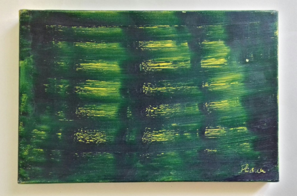 Pictura decorativa cu tematica abstracta, avand dimensiunile sasiului de 20 cm x 30 cm, in stare buna.