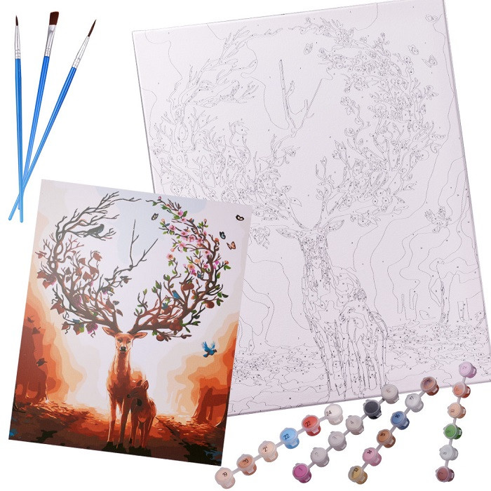 Pictura mare dupa numere si poza 40 x 50 cm pe rama din lemn, model Cerb