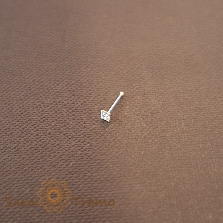 Explorează subtilitatea și eleganța cu piercingul delicat pentru nas din argint de la SaraTremo, accentuat cu un cristal zirconia alb, micuț și pătrat! Acest piercing finuț este conceput pentru cei care apreciază bijuteriile discrete, dar cu o prezență distinctă.