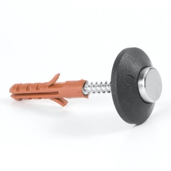 Acesti pini magnetici de perete au o putere incredibila de sustinere si sunt excelenti pentru suspendarea sculelor, a semnelor metalice, a brelocurilor sau a accesoriilor metalice. Pinul se fixeaza pe perete cu ajutorul diblului si a surubului care se introduce prin rozeta neagra din plastic, iar la final magnetul neodim disc este asezat deasupra, in interiorul rozetei.