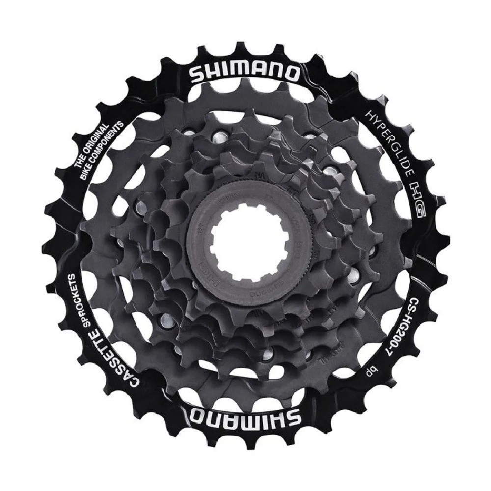Pinionul casetat Shimano CS-HG200-7 este conceput pentru biciclete cu transmisii de 7 viteze, asigurand schimbari line si precise datorita tehnologiei HyperGlide (HG).