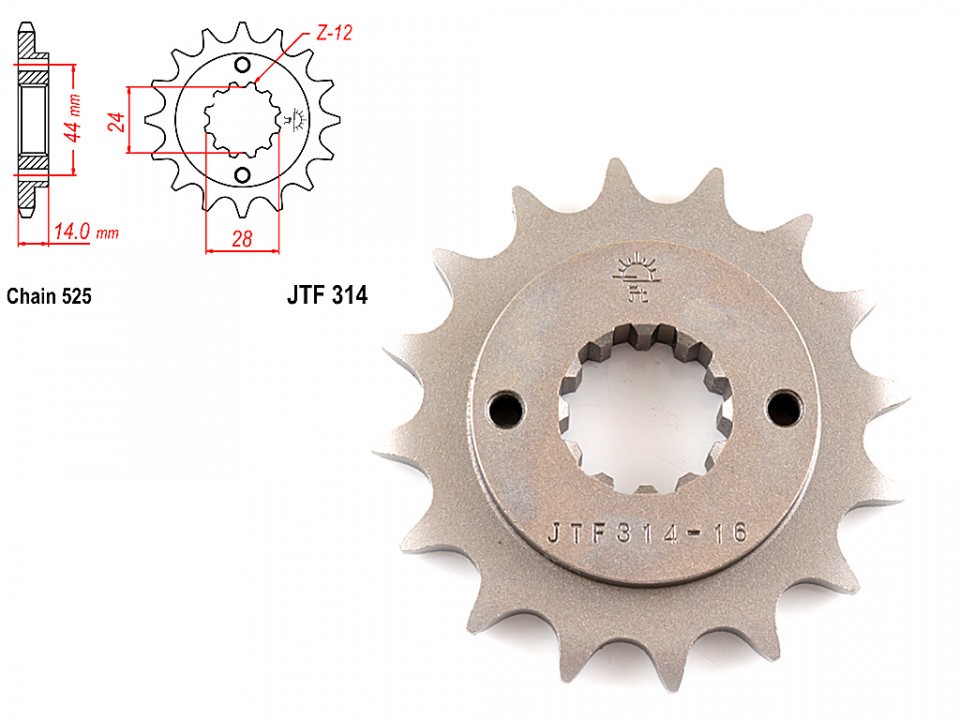 nr.dinti:16; Pas:525; Dint:24/28mm; distanta intre gauri:44mm; Grosime:14mm