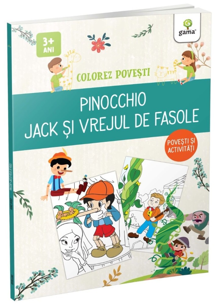 Povestile ii invata pe copii sa-si gestioneze relatiile, dorintele si conflictele intr-un mod sanatos, sa fie rezilienti, buni si empatici, in ciuda adversitatilor. Ei afla, astfel, ca problemele, oricat de greu de infruntat par, au in cele din urma rezolvare si ca binele triumfa. O serie de carti de colorat care imbina puterea povestilor cu beneficiile coloratului este, asadar, o alegere minunata daca vrem sa-i ajutam sa invete prin joc. Cartea contine doua povesti de citit si colorat, Pinocchio & Jack si vrejul de fasole, precum si pagini cu activitati de asociere, de gasire a drumului corect sau de gasire a diferentelor dintre doua imagini.