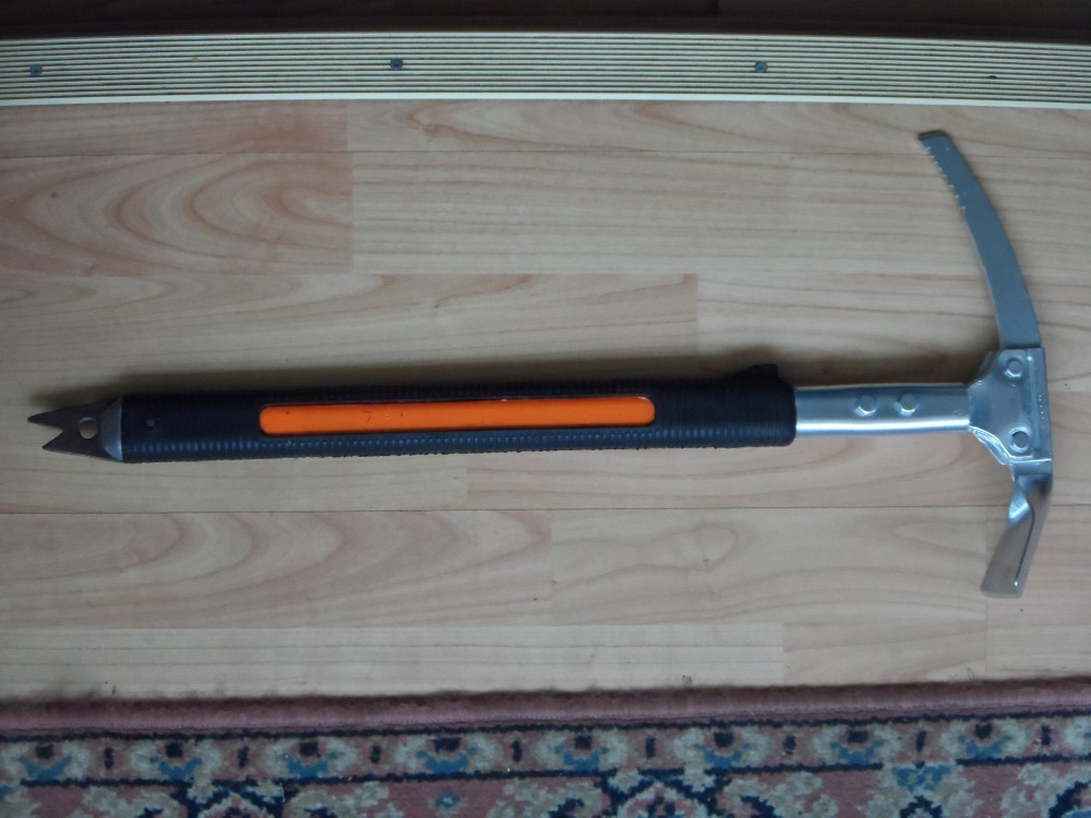 Piolet model Sfantu Gheorghe, anii 1985-90, stare buna. Coada este din dur-aluminiu imbracata in cauciuc, de lungime 55 cm, iar pioletul, culungime de 26 cm si varful cozii sunt din otel, greutate 950 g. Este perfect functional, dar poate fi si o excelenta piesa de panoplie. La plata in cont bancar, transportul este gratuit. Vizionati toate produsele mele.