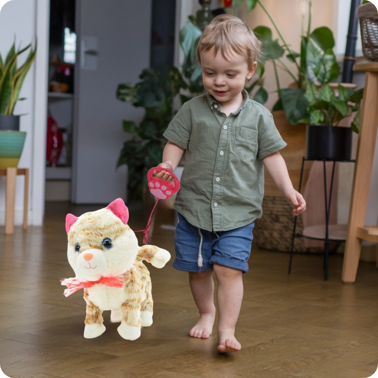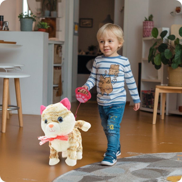 ✅Încurajează mișcarea prin jocuri interactive și plimbări cu pisoiul.