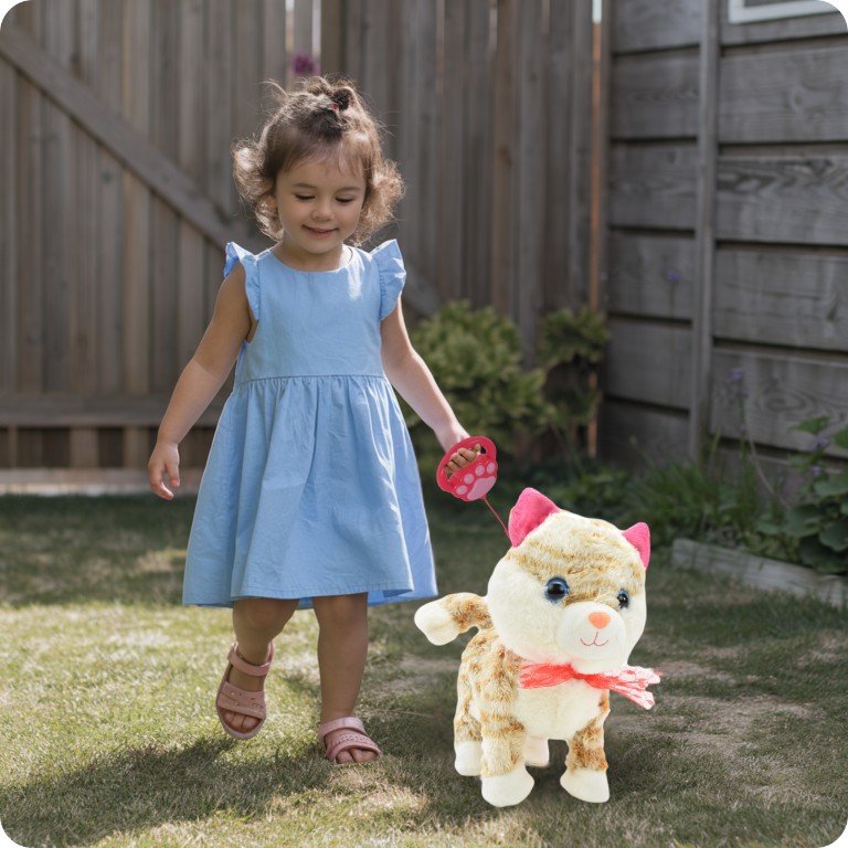 ⭐Un buton încorporat în lesă permite controlul ușor al jucăriei – pisicuța merge înainte, dă din coadă și miaună.