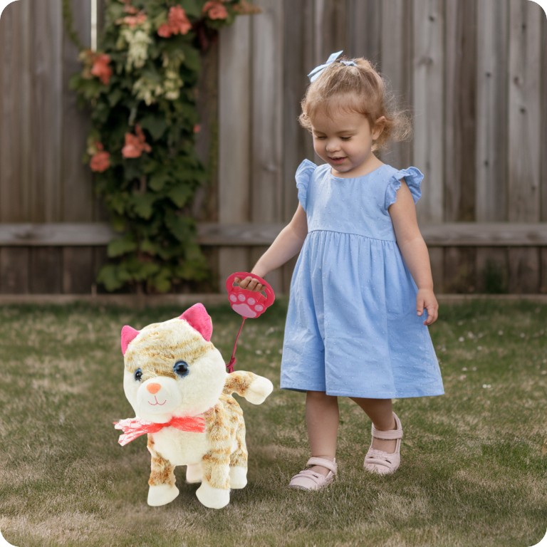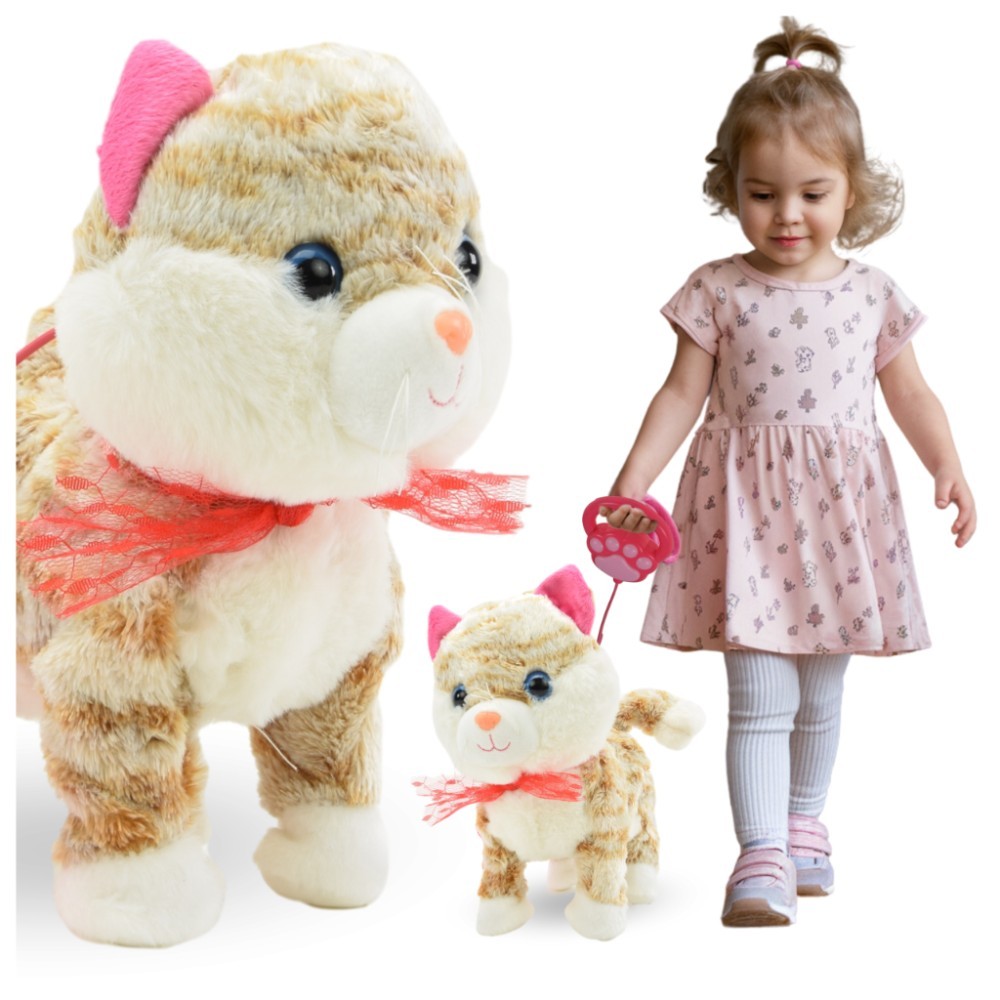 Pisică interactivă cu lesă – miaună, merge, se joacă!