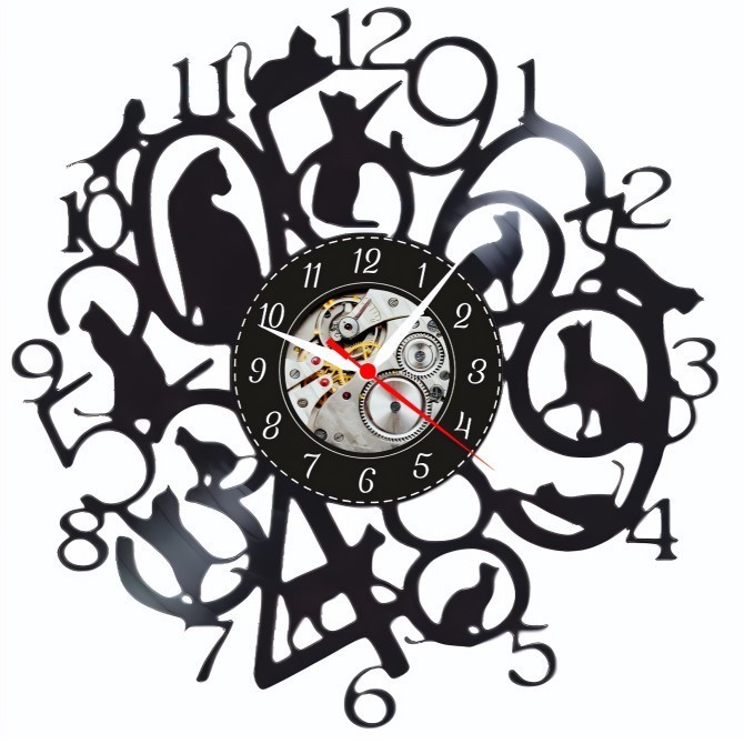 Ceas de Perete „Pisici și Numere” din Disc de Vinil