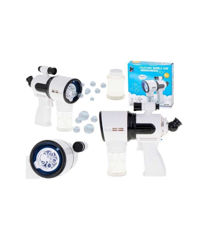 Pistol de facut baloane din sapun cu lumini si sunet model telescop, alb 20 cm x 7.5 cm x 18 cm