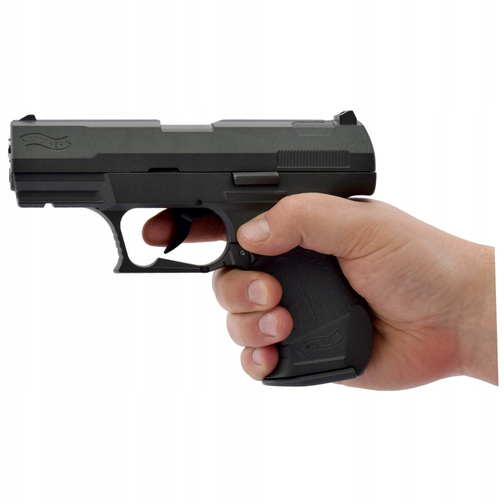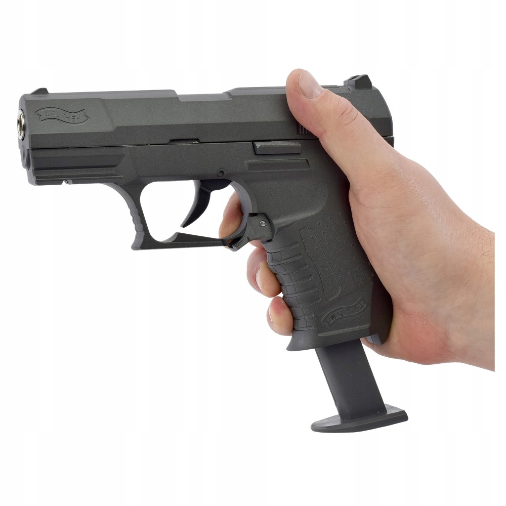 - Suprafața aspră a mânerului face pistolul confortabil de ținut