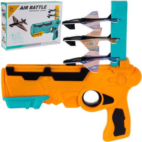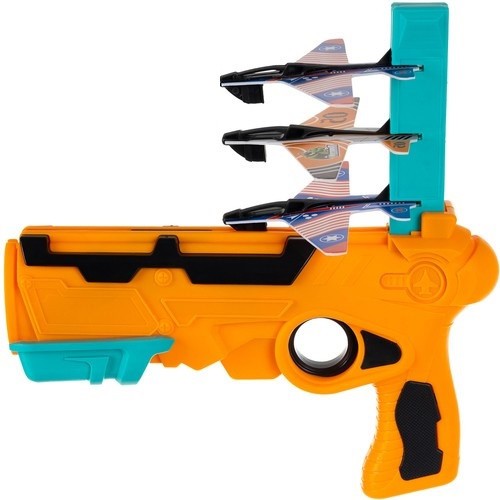 USOR DE UTILIZAT - pentru a incarca lansatorul cu un avion, puneti avionul in magazie, apoi reincarcati pana auziti un clic caracteristic - apasati pe tragaci si ati lansat deja 1 avion. Apoi apasati butonul negru de sub incarcator pentru a reincarca pistolul si a trage urmatorul avion.