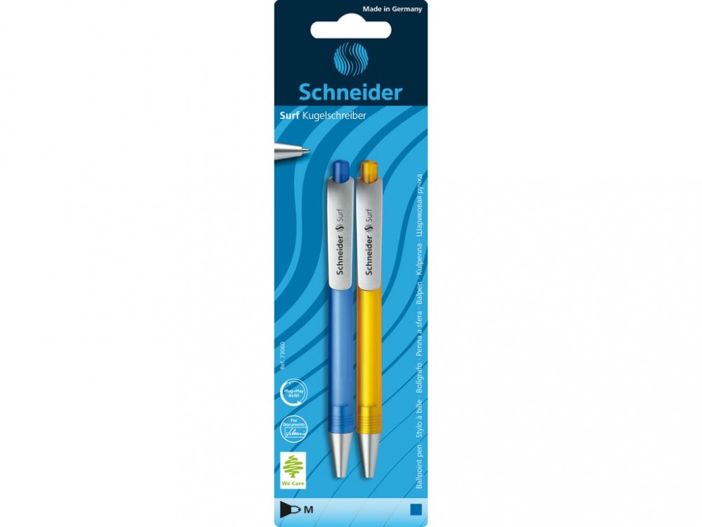 Pix Schneider Surf la blister. Culoarea translucida a corpului creeaza un aspect ,,de gheata", datorita finisajului mat. Corp din plastic, cu clema lata argintie Disponibil doar la blister (2 buc.: bleu si galben) Grosime de scriere: 0,4 mm (M) Detalii: 10 blistere/cutie