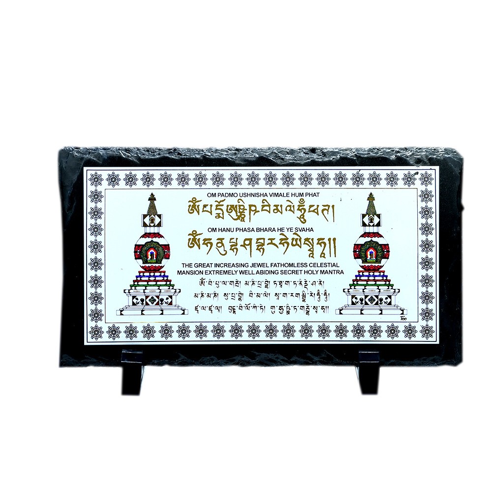 Acesta este un minunat tablou pe care sunt reprezentate 2 stupe Kalashaka cu 5 culori si 5 elemente pe ambele parti. Cuprinde 2 mantre puternice : mantra pentru indeplinirea dorintelor OM PADMO USHNISHA VIMALE HUM PHAT si mantra de curatare OM HANU PHASA BHARA HE YE SVAHA.
