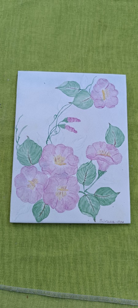 Placa decorativa de faianta, pictata manual, semnata si datata