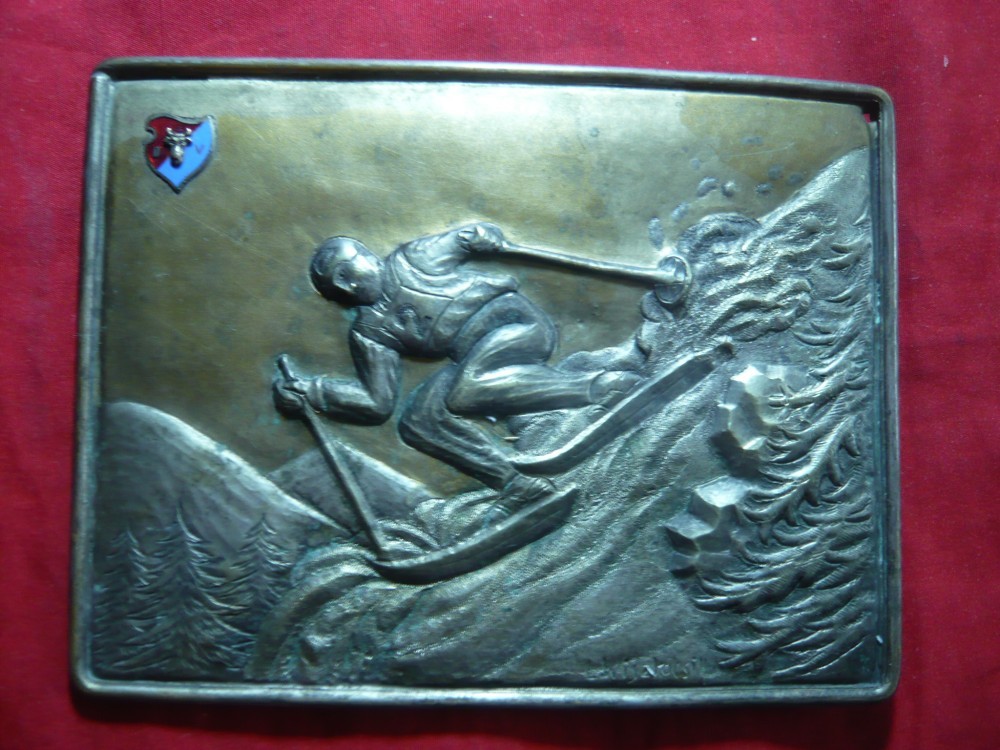 Placheta - Concurs SKI in Moldova ( Vatra Dornei )metal argintat , 13,5x10,5 cm Emblema Cap Bour si D.V.- in email