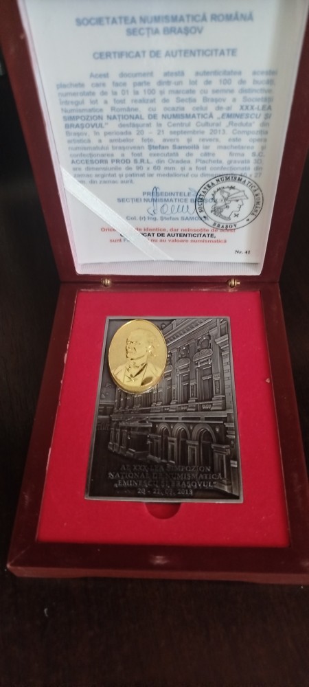 placheta comemorativa mihai eminescu,editie limitata,certificat de garantie