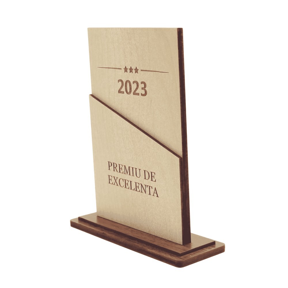 Placheta onorifica - Recunoastere si Apreciere cu Eleganta Placheta onorifica este realizata cu atentie la detalii, folosind materiale de inalta calitate. Designul sau sofisticat si optiunile variate de personalizare o fac potrivita pentru orice ocazie in care se doreste recunoasterea si aprecierea unui merit deosebit . Material: Lemn de calitate superioara, sticla sau acril, in functie de preferinte. Design: Modele elegante si moderne, cu posibilitati multiple de personalizare. Personalizare: Text gravat, logo-uri, nume, mesaje si date speciale. Dimensiuni: 15 x 5 x 16 cm Culoare: Variante de finisaje naturale , cu optiuni de culori multiple. Recunoastere eleganta: Plachete de recunoastere onorifice, sunt create pentru a exprima aprecierea intr-un mod elegant si rafinat. Personalizare unica: Oferim multiple optiuni de personalizare pentru a crea un cadou cu adevarat unic si memorabil. Versatilitate: Ideala pentru ceremonii de premiere, evenimente corporative, aniversari, si multe altele. Durabilitate: Materialele de calitate si gravura precisa asigura un produs de lunga durata. Recomandari pentru utilizare Plachetele onorifice pot fi folosite in diverse contexte, cum ar fi: premii corporative, recunoasterea meritelor in cadrul unor organizatii, ceremonii de absolvire, sau ca simbol de apreciere pentru realizari deosebite. Ce tipuri de personalizare sunt disponibile? Oferim gravura cu text, logo-uri, nume si mesaje speciale. Ne puteti contacta pentru optiuni personalizate suplimentare. Cat timp dureaza realizarea unei plachete onorifice? Timpul de realizare variaza in functie de complexitatea personalizarii, dar in general, este intre 2-3 zile lucratoare. Care sunt materialele folosite pentru plachete? Plachetele noastre sunt realizate din lemn de calitate, sticla acrilica, in functie de modelul ales. Recunoasteti meritele si exprimati aprecierea intr-un mod elegant cu placheta noastra onorifica. Comandati acum si bucurati-va de un produs de calitate superioara!