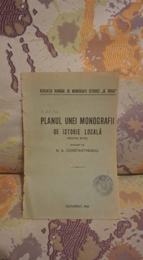 Planul unei monografii de istorie locala (pentru sate) de N.A.Constantinescu